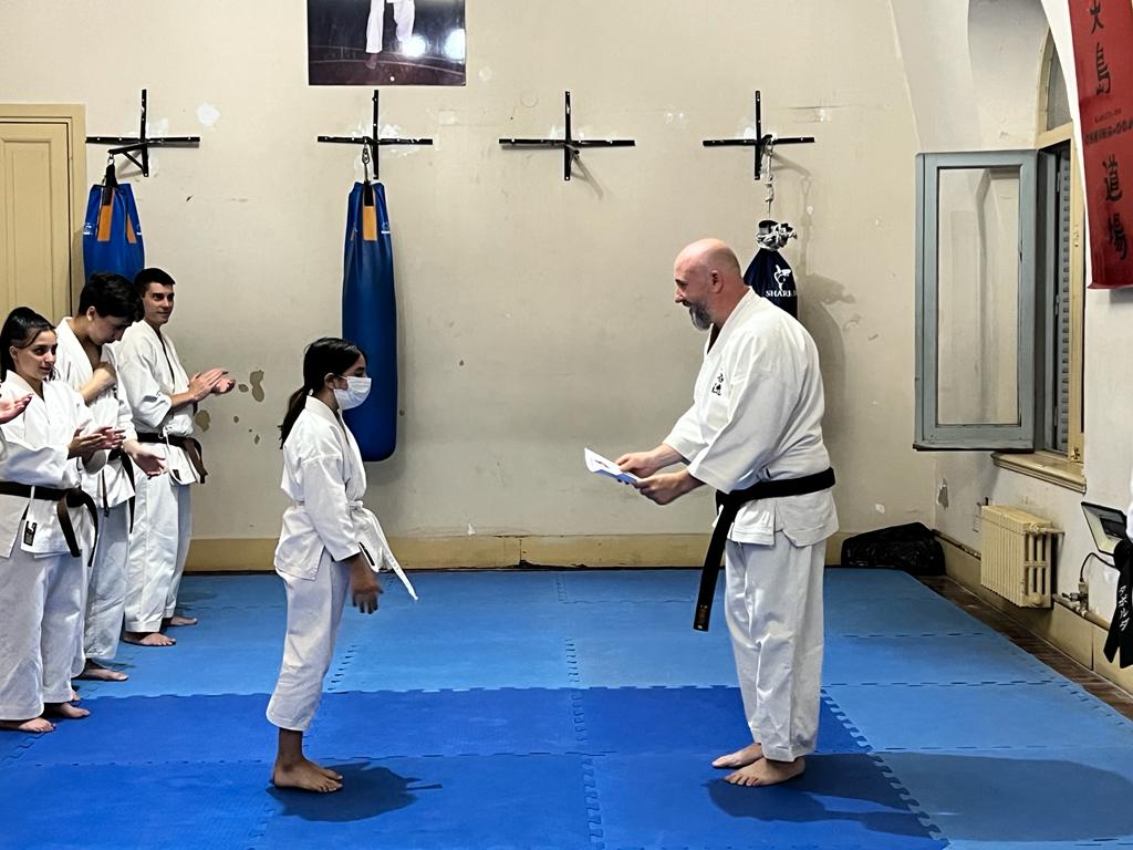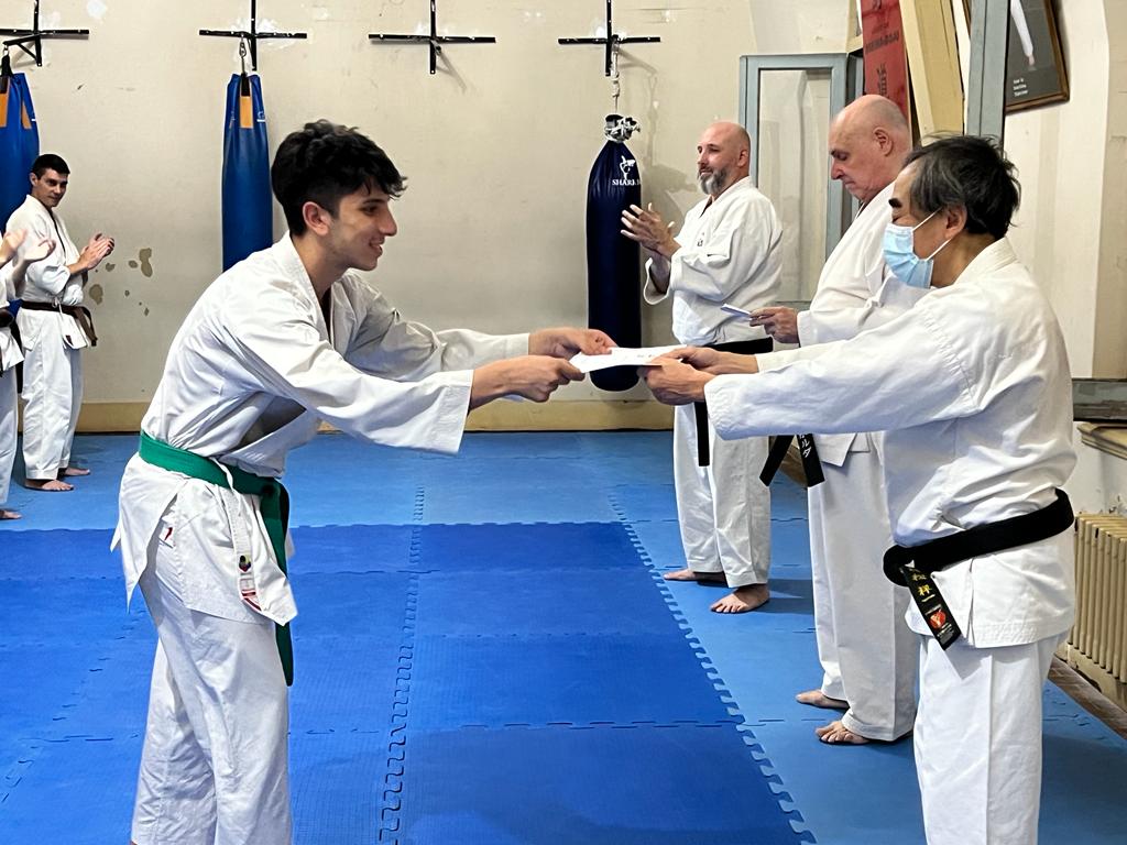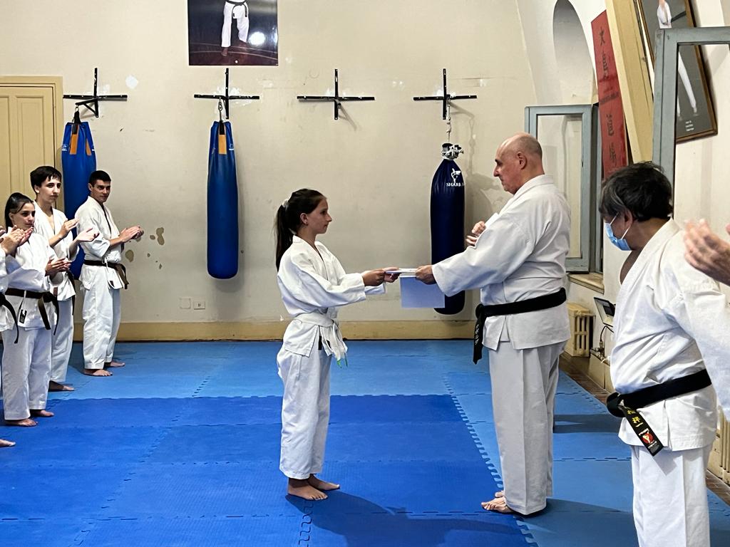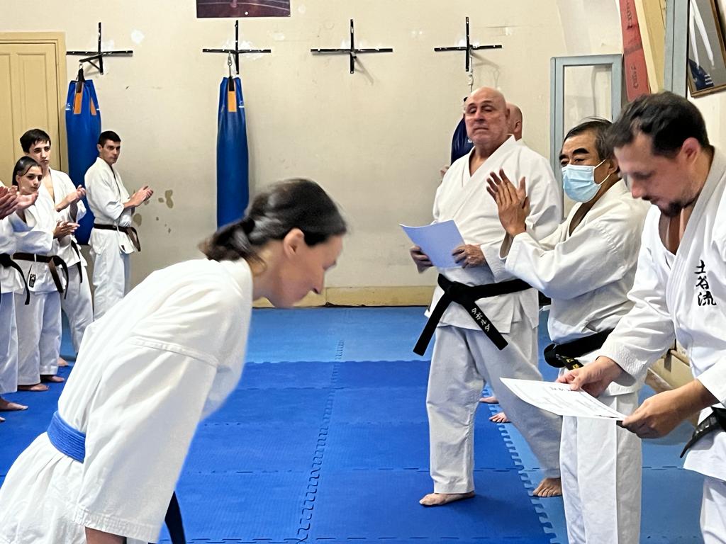 Sobre el final de la clase, Taborda Sensei, acompañado por los Renshi Héctor Muramatsu y Nicolás Taborda, y el encargado de la Sede Ateneo Sagrada Familia, Raúl Nisterenko, hizo entrega de los certificados que acreditan las graduaciones de kyu obtenidas por los practicantes que se presentaron ante la última Mesa Examinadora, conformada el 2 de noviembre.