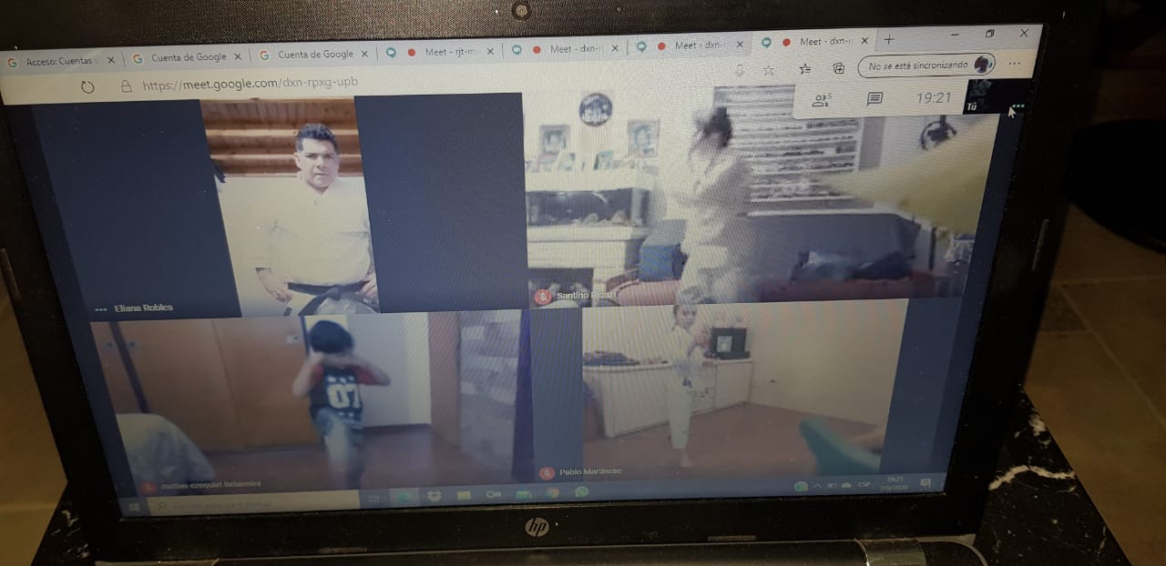 A través de las herramientas virtuales de comunicación (zoom y google meet) durante todo el mes de agosto continuamos practicando nuestro arte marcial.-
