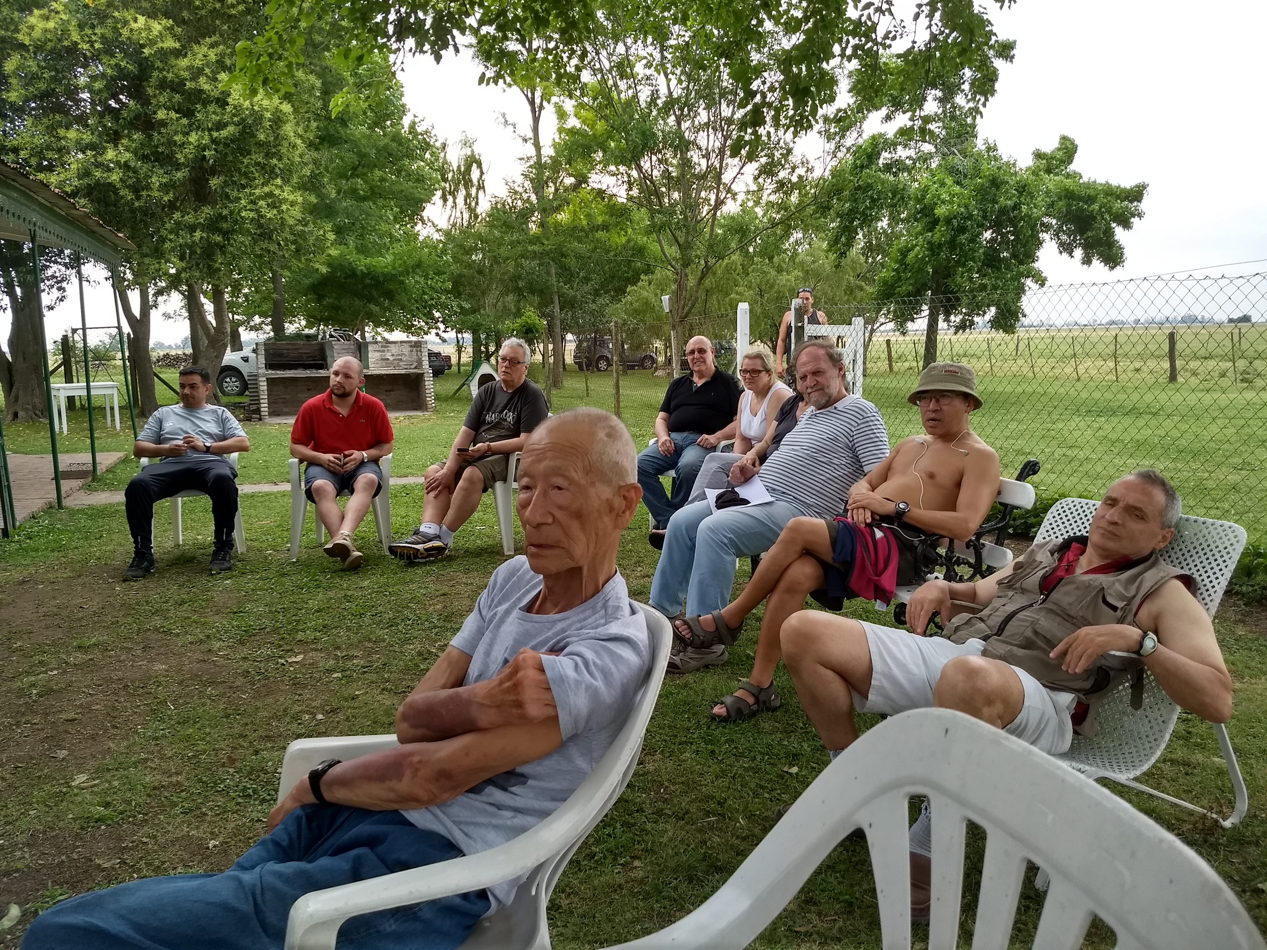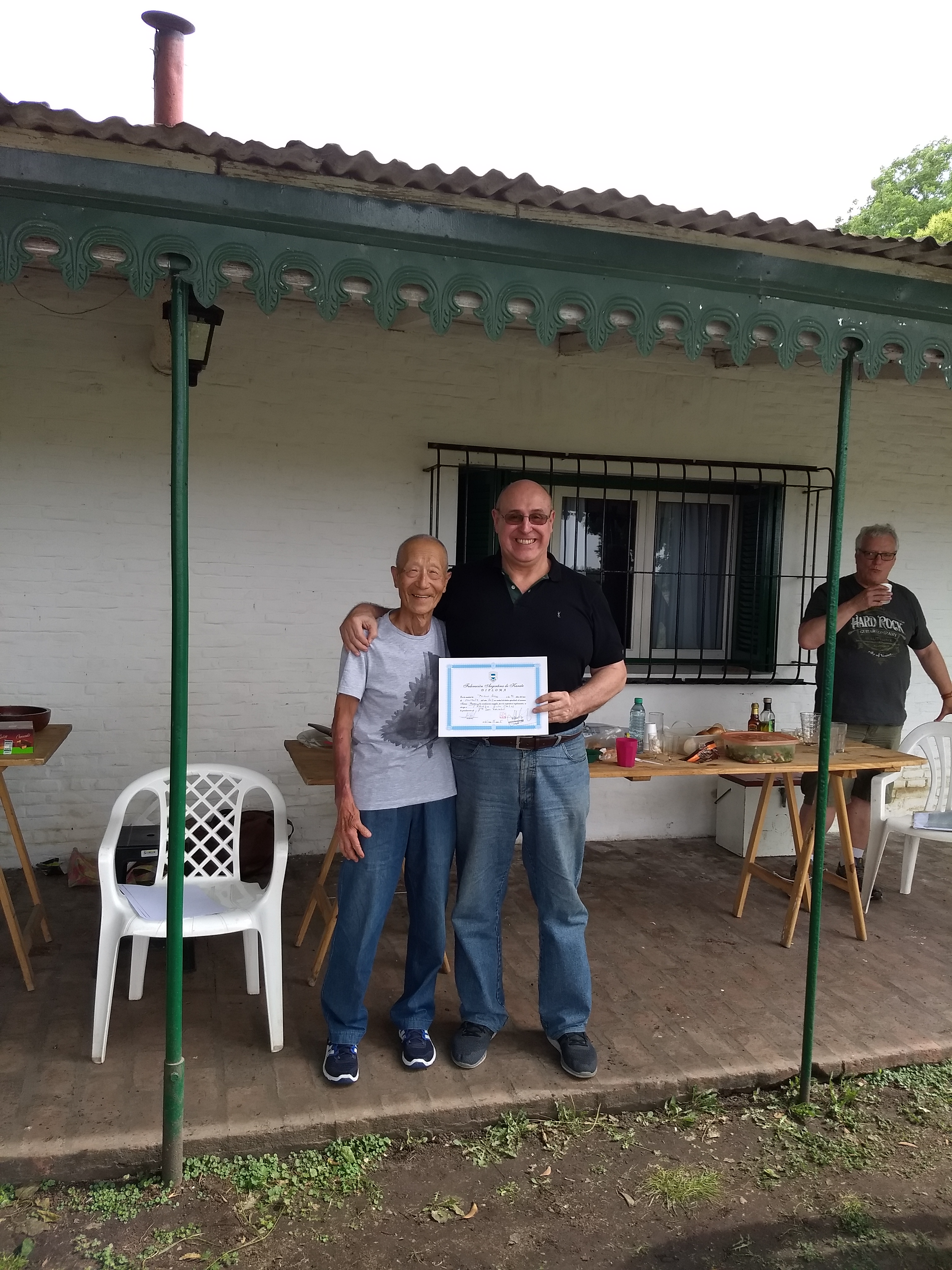 Pero esta vez la jornada tuvo un sabor especial ya que pudimos reencontrarnos con Oshima Sensei, quien recuperado de los problemas de salud que lo mantuvieron alejado del Dojo buena parte del año, encabezó los festejos compartiendo la tradicional picada, seguida del exquisito asado ofrecido por Luis y cuidadosamente preparado por su gente.