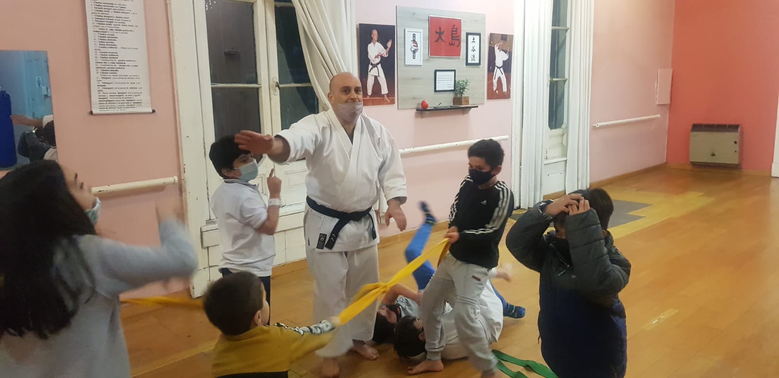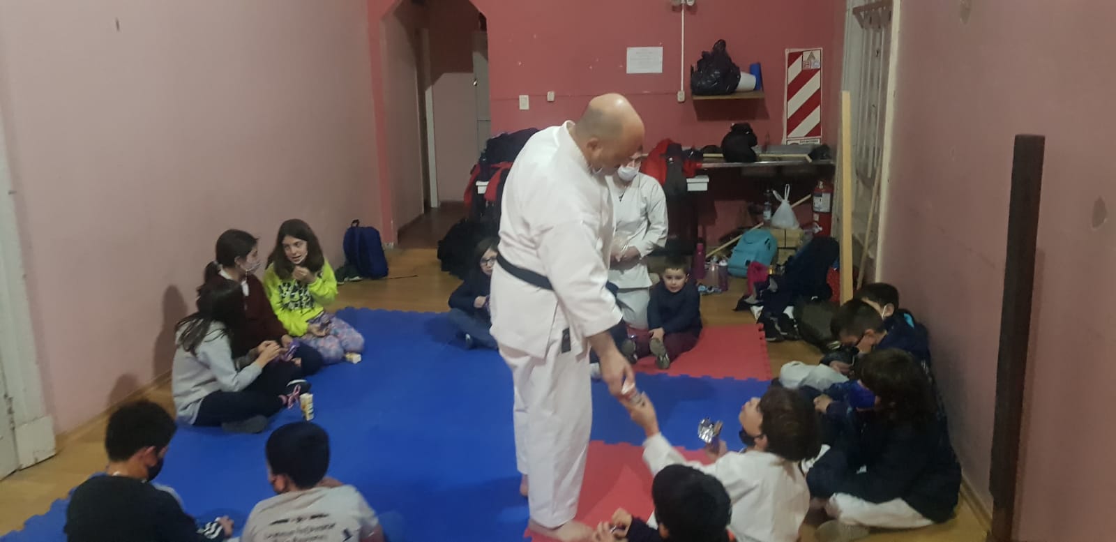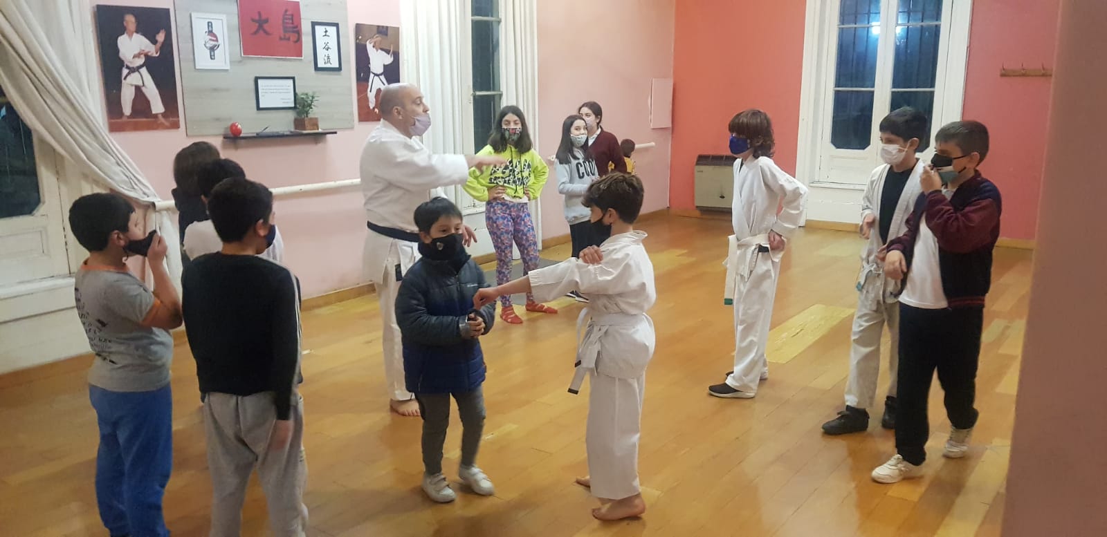 En esta jornada particular los más pequeños concurrieron a clase acompañados de un amigo, para llevar adelante una clase en conjunto, donde se combinaron juegos, una aproximación a los valores fundamentales del karate, y una muestra de sus nociones básicas: cómo cerrar el puño, tsuki, bloqueos básicos, desplazamientos y keri.