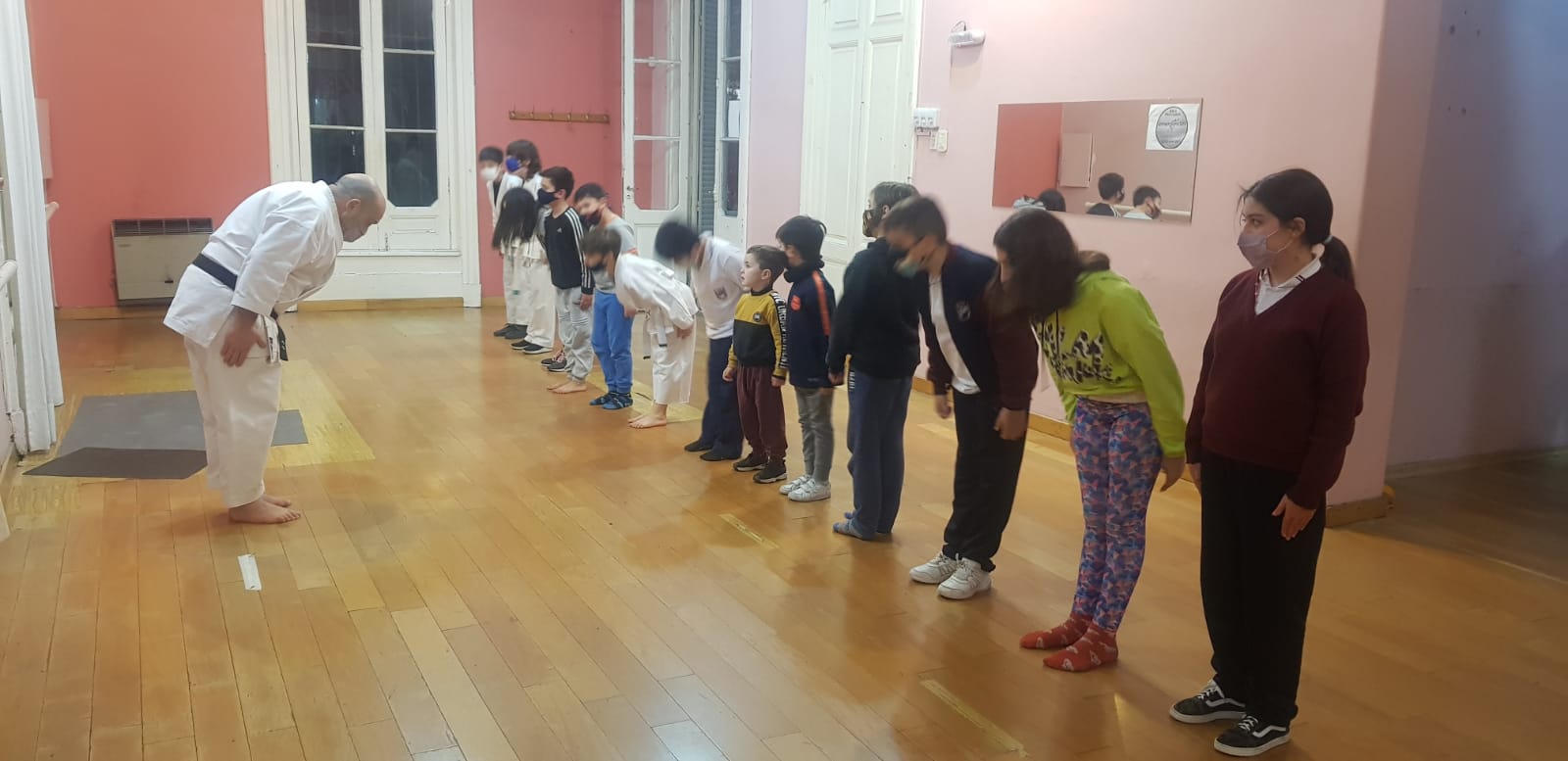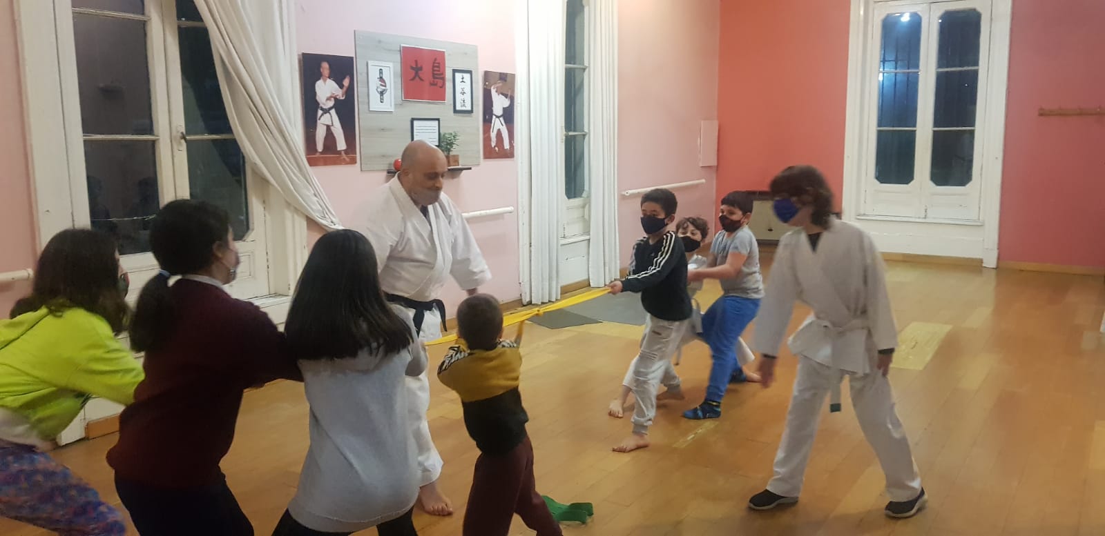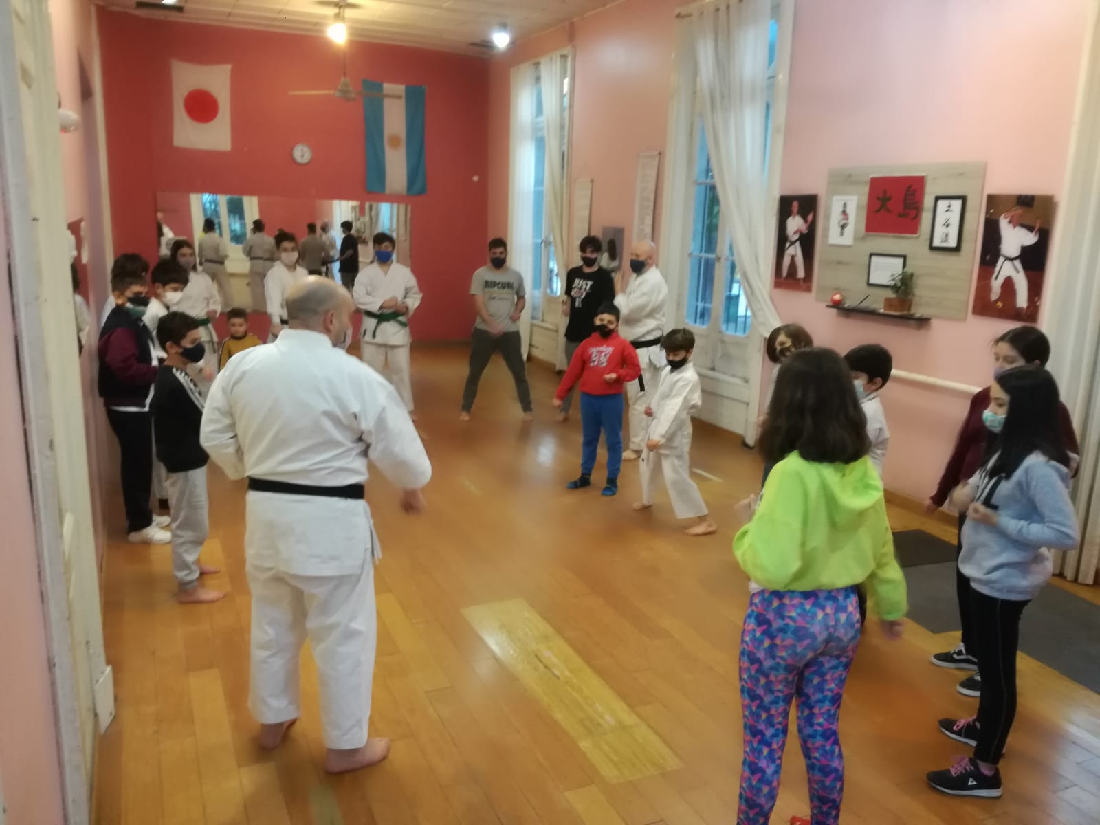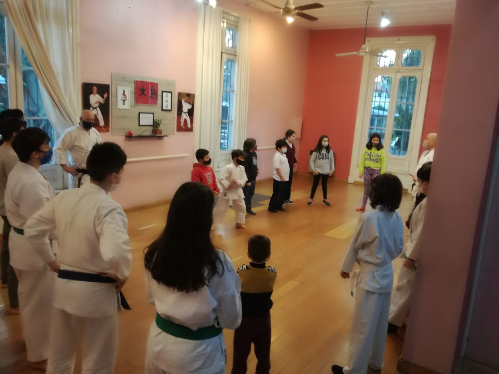 En esta jornada particular los más pequeños concurrieron a clase acompañados de un amigo, para llevar adelante una clase en conjunto, donde se combinaron juegos, una aproximación a los valores fundamentales del karate, y una muestra de sus nociones básicas: cómo cerrar el puño, tsuki, bloqueos básicos, desplazamientos y keri.