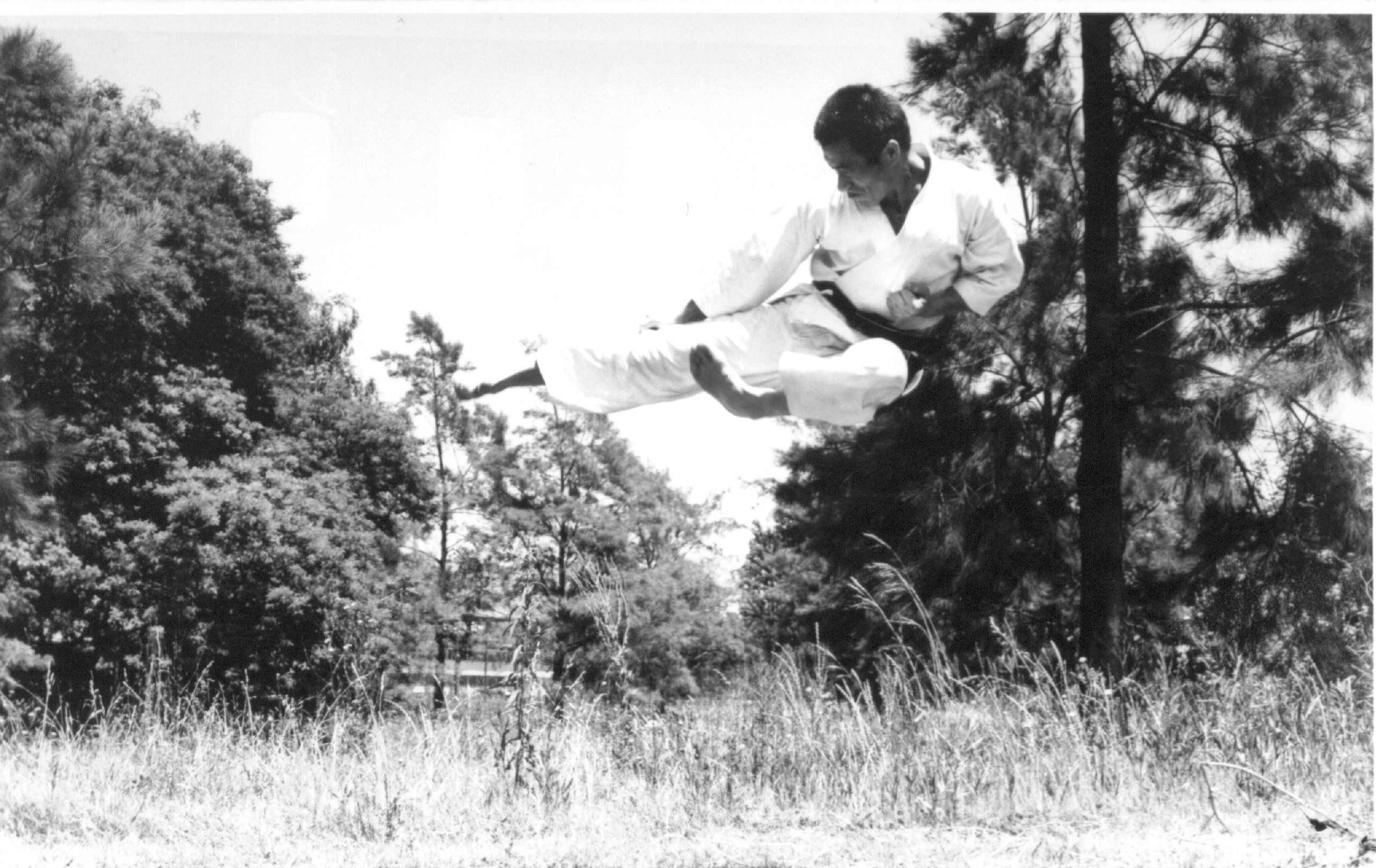 Él se iba despreocupadamente a corregir a los kyus, por ejemplo Yokogueri Kekomi y mostraba esta difícil técnica pateando por sobre su propia cabeza con kimé y ejecutaba Nidan Gueri con velocidad y perfecta combinación de las piernas en el salto y equilibrio al caer.