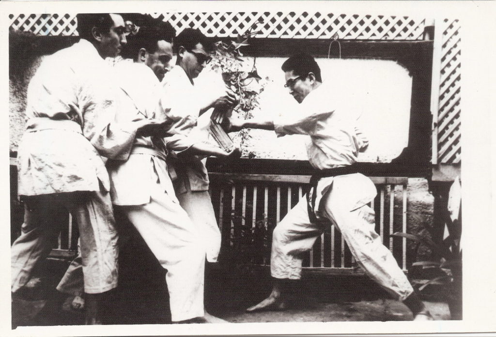 Junto al Maestro Shoei MIyazato, del shorin ryu shidokan. Tsuchiya sensei fue uno de los introductores de karate do en la Argentna, ambos en el año 1959.