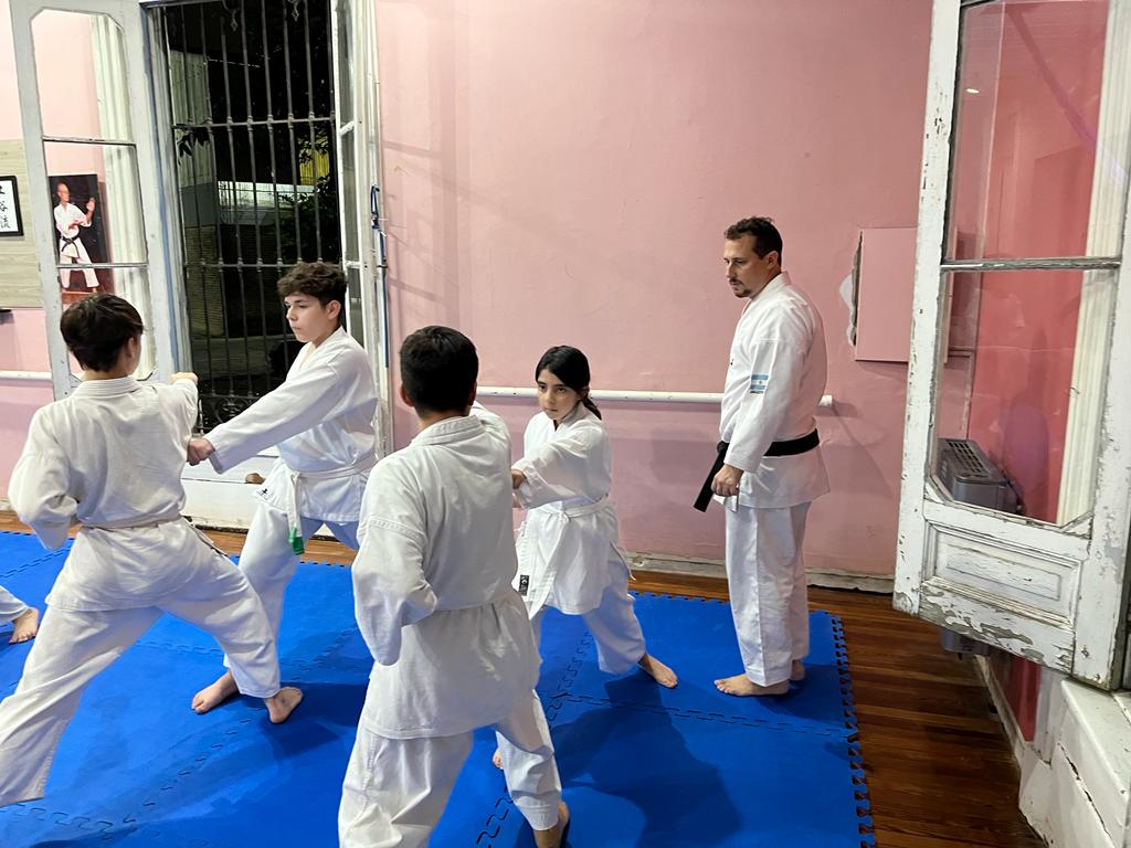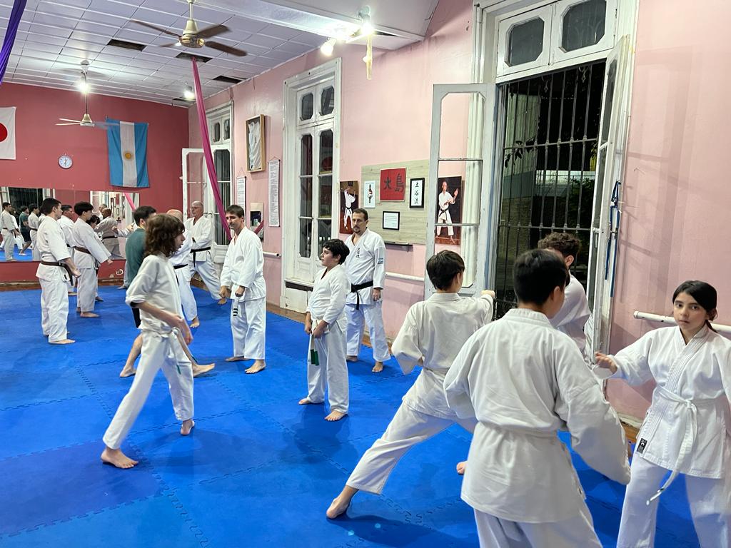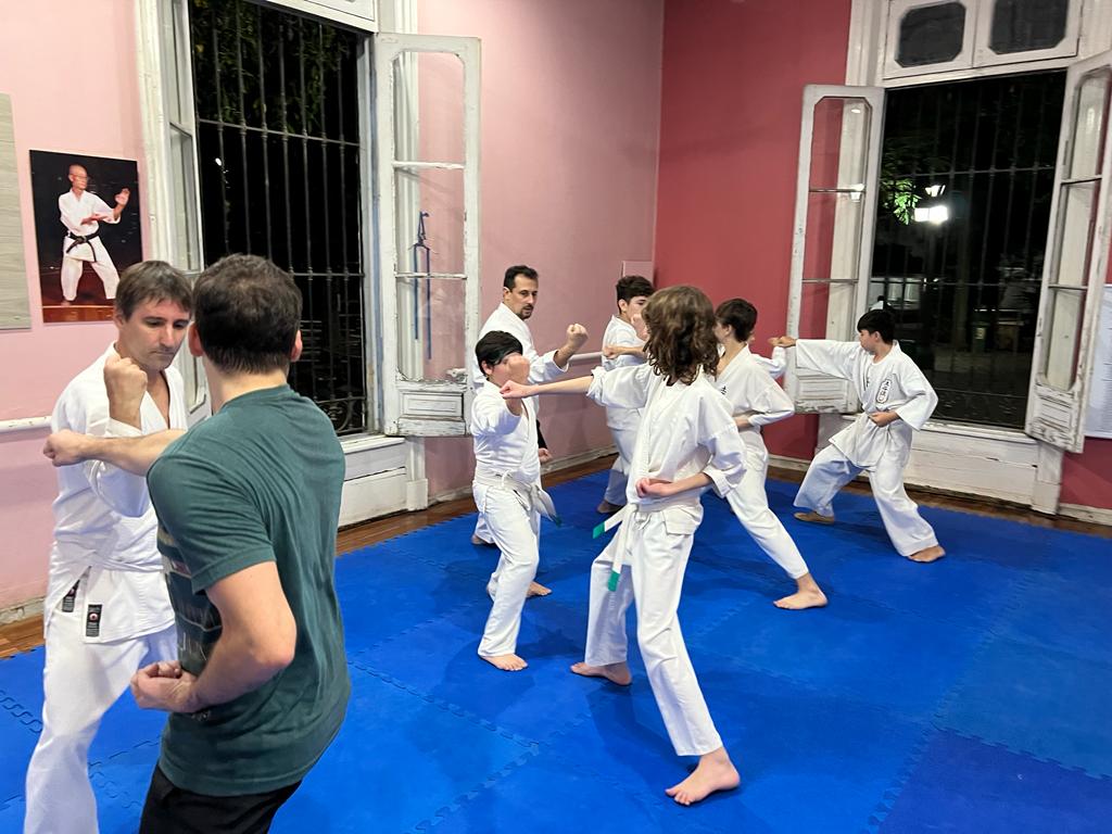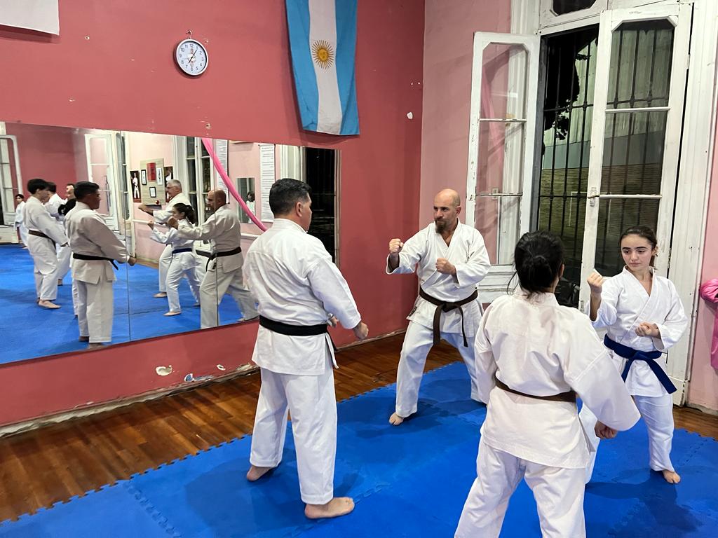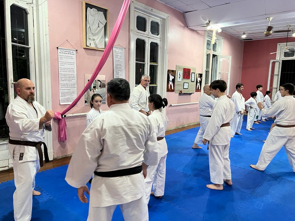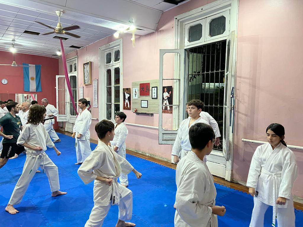 En una primera parte de la práctica, efectuó correcciones en la ejecución conjunta de técnicas básicas, para luego pasar a la ejecución de ippon kumité, y finalmente a la práctica de las katá correspondientes a las categorías de los presentes.-