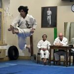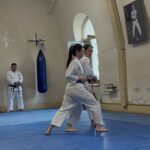 La evaluación se complementó con la ejecución de ejercicios de Tanganjó, makiwara y bolsa, y preguntas sobre conocimientos teóricos formuladas por los examinadores.