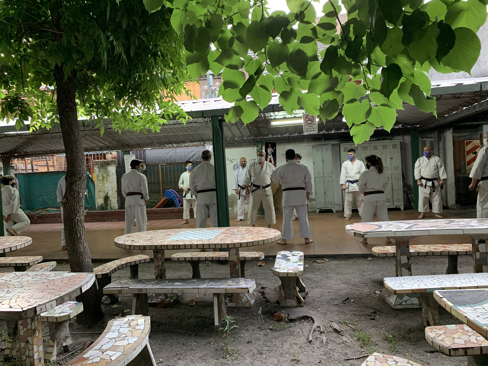 La actividad tuvo lugar principalmente en el quincho abierto del club, contando con una óptima ventilación y circulación de aire. En un primer momento se centró en los principiantes, mientras los avanzados hacían una actividad diferenciada a cargo de Nicolás Taborda (5° Dan), para luego integrarse a la clase grupal dictada por Sensei.