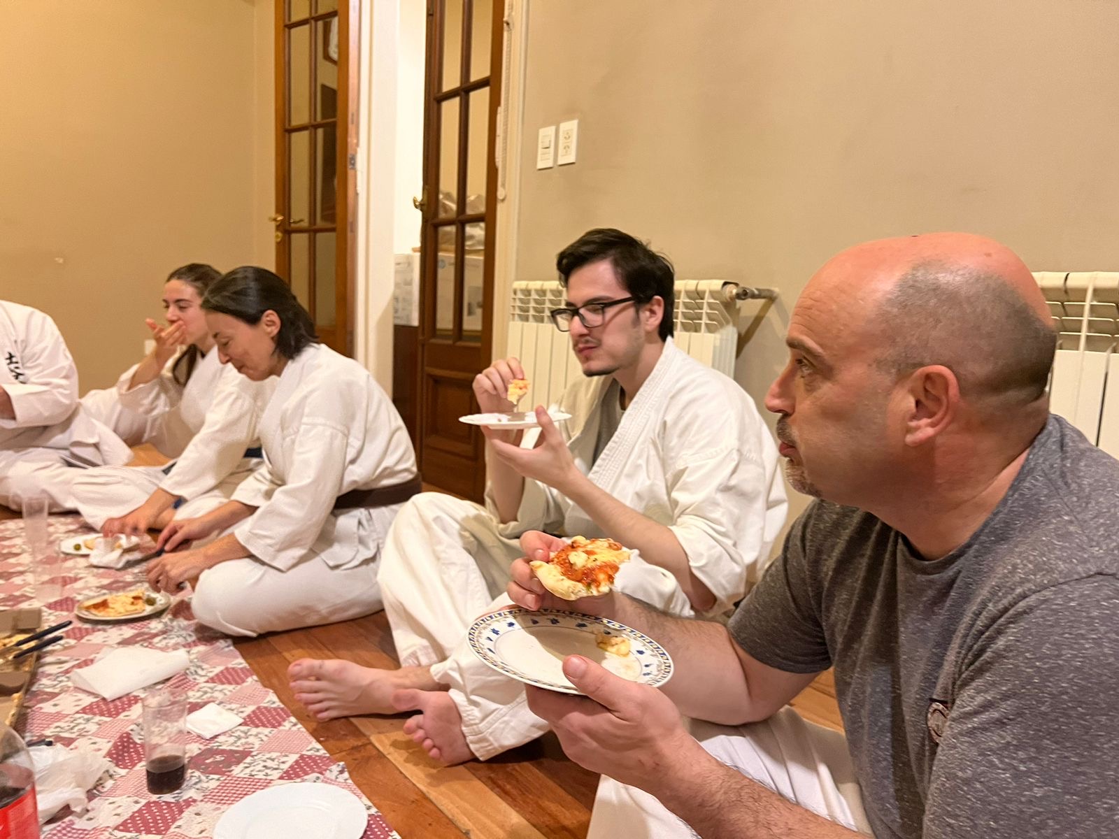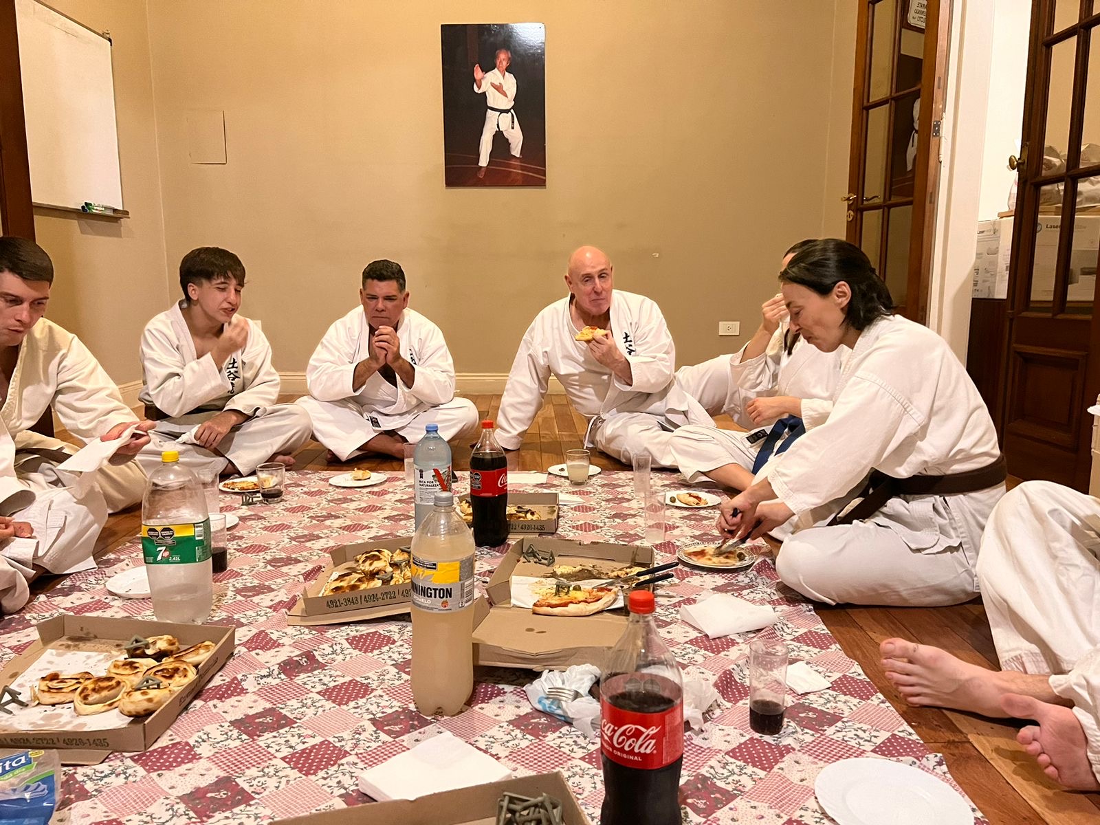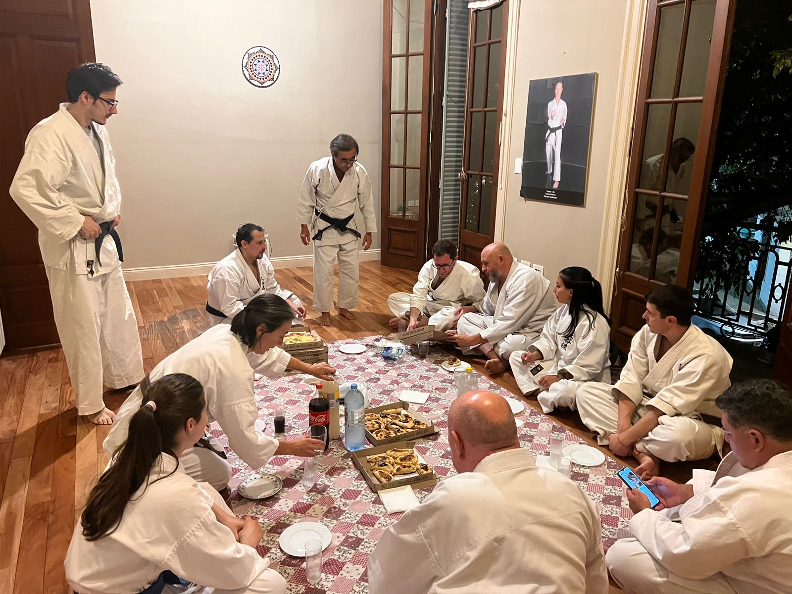 Finalizada la actividad, todos los intervinientes compartieron la cena, donde en un ambiente más distendido, pudieron interactuar con nuestro visitante, recibiendo consejos y anécdotas sobre su vínculo cotidiano con Tsuchiya Sensei, a quien definió como “un joven de 91 años” que permanentemente entrena y enseña con alegría, planteando el desafío de interpretar su karate como una disciplina en permanente estudio y evolución, e invitando a sus discípulos a que en cada clase, practiquen con mentalidad abierta que los conduzca a la superación constante.