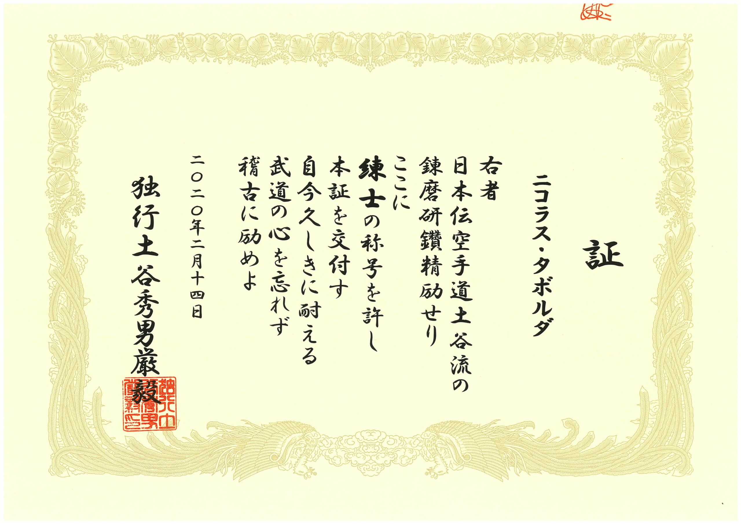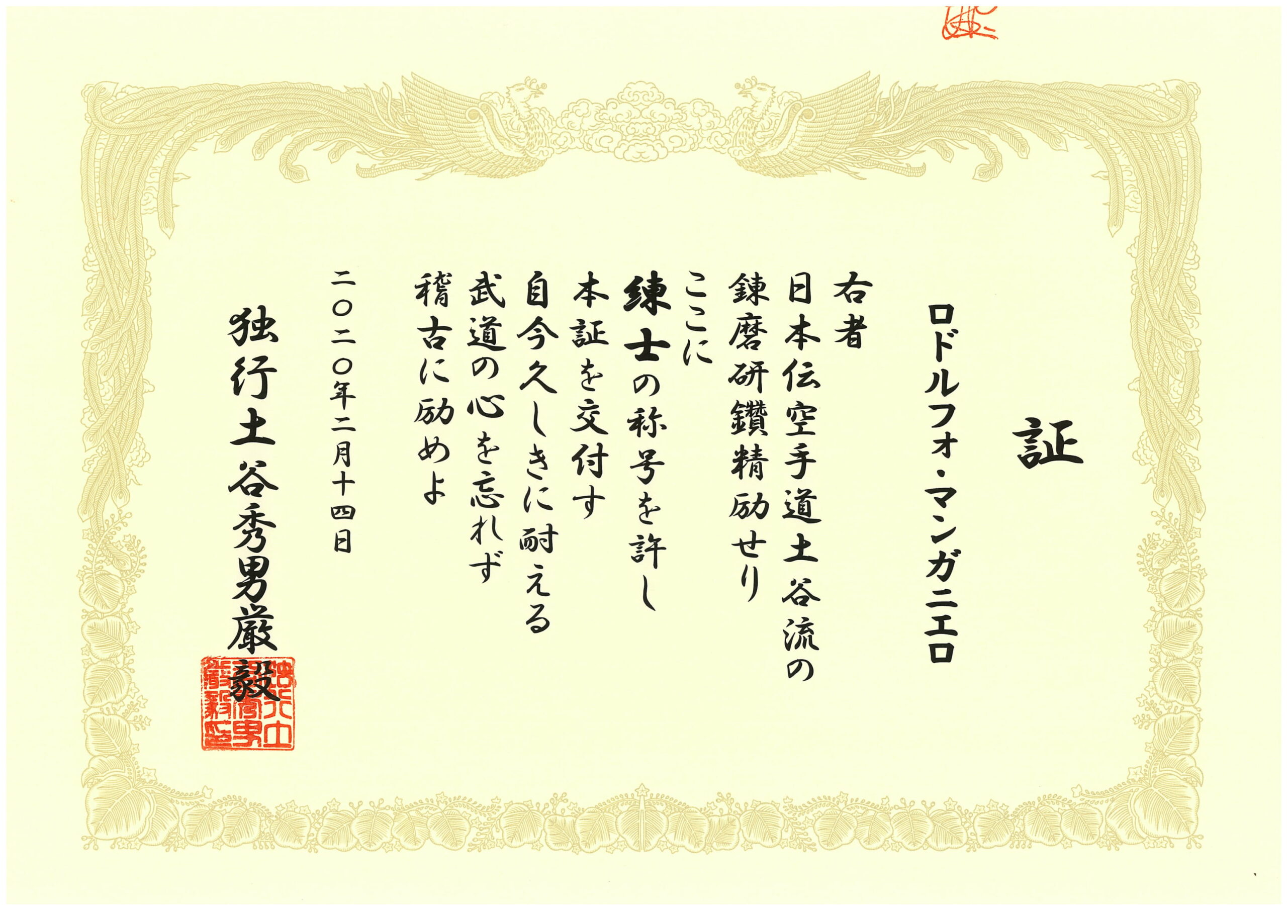 A comienzos del mes de octubre Tsuchiya Sensei, Maestro y creador del Estilo de Karate-Do “Nippon Den Karate-Do Tsuchiya Ryu”, les otorgó a los 5tos. Danes: Rodolfo Manganiello, Héctor Muramatsu y Nicolás Taborda los diplomas de RENSHI.