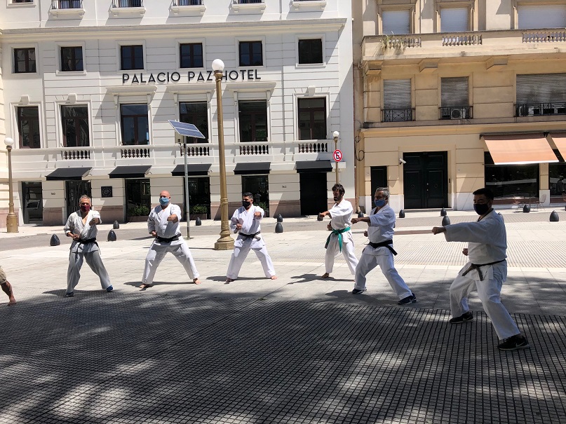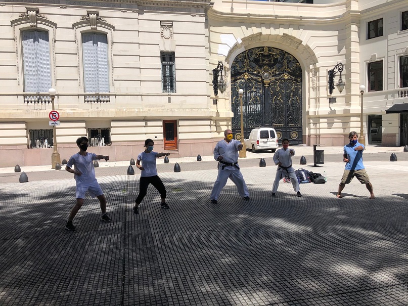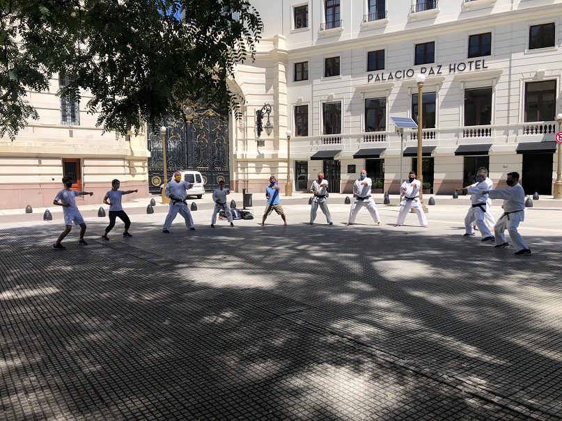Continuando con la agenda de actividades del este 2021, el sábado 20 de febrero, esta vez en la explanada de ingreso al Círculo Militar de la República Argentina, a partir de las 10.00 hs., tuvo lugar la segunda práctica conjunta de karate entre los alumnos de distintas sedes del Oshima Dojo.