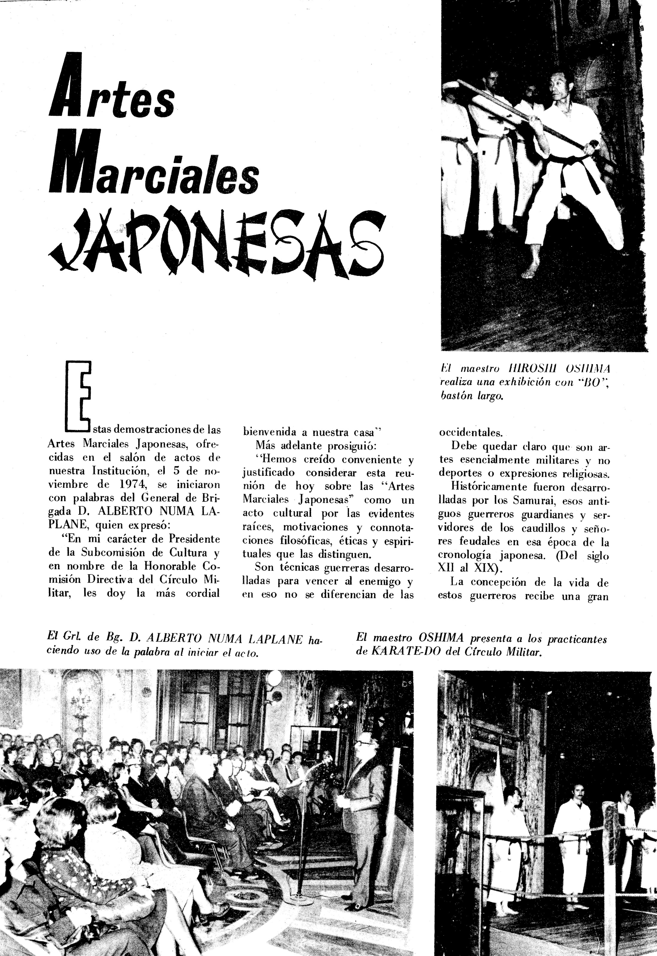 En el año 1974 se llevó adelante una exhibición de Artes Marciales Japonesas, que luego dio lugar a una publicación en el Anuario de la Entidad.