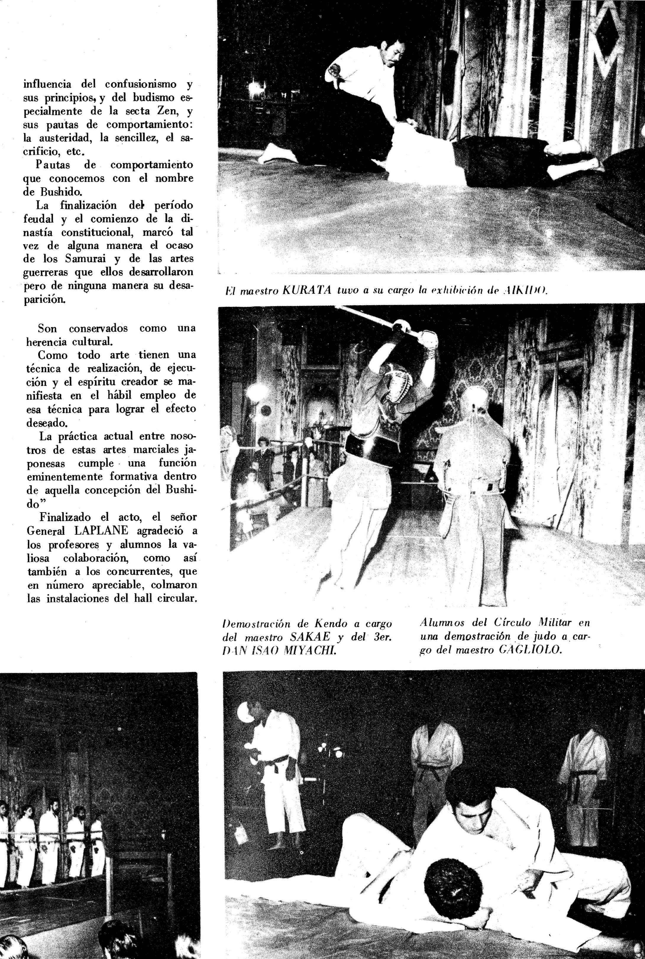 El encuentro, combinó demostraciones, por supuesto de Karate, (dirigidas por Oshima Sensei) y Judo (a cargo del Maestro Gagliolo), que eran las disciplinas que por entonces se enseñaban en Círculo Militar; a las que se sumaron Kendo (por parte del Maestro Sakae) y Aikido (con el Maestro Kurata).