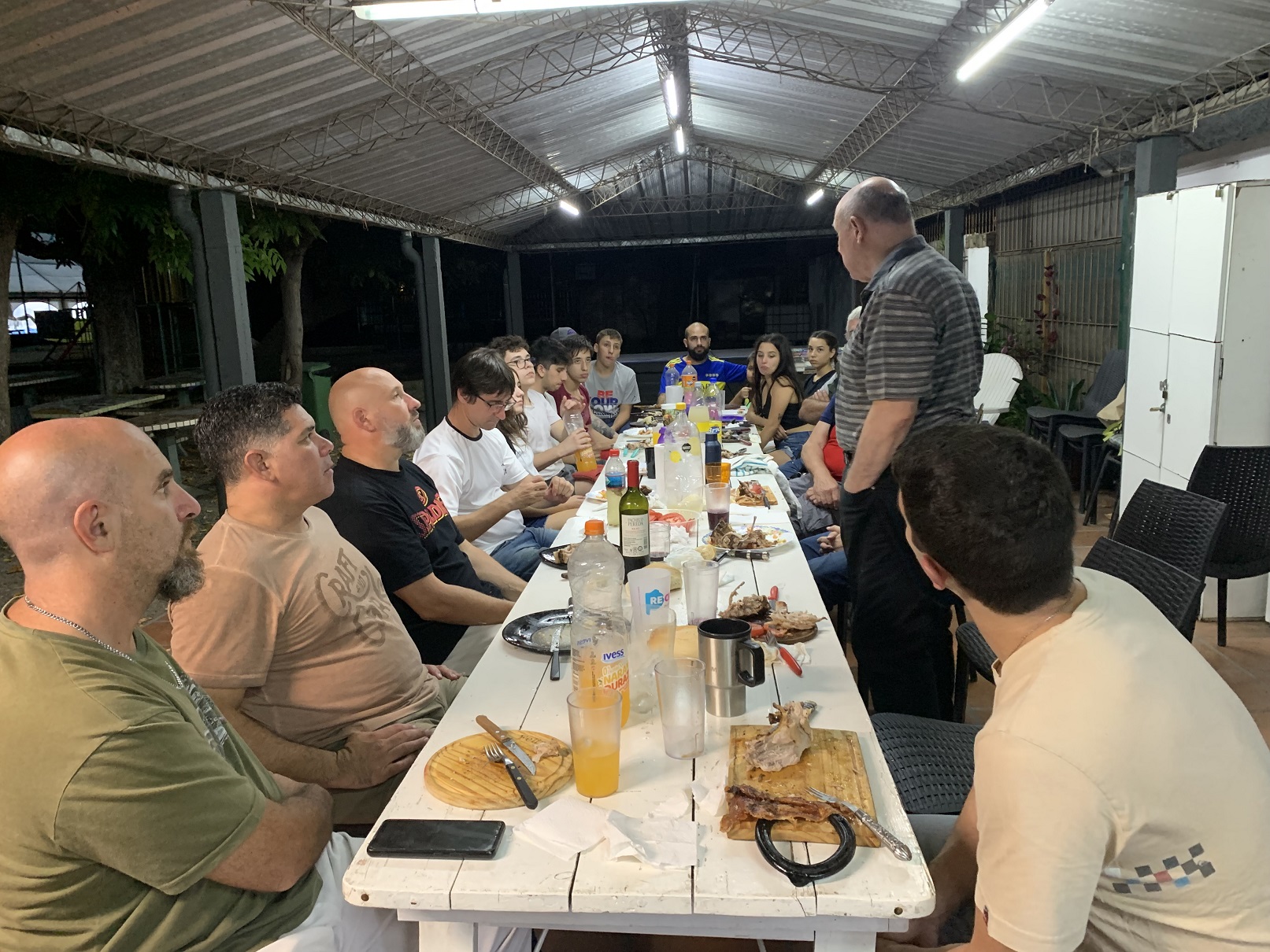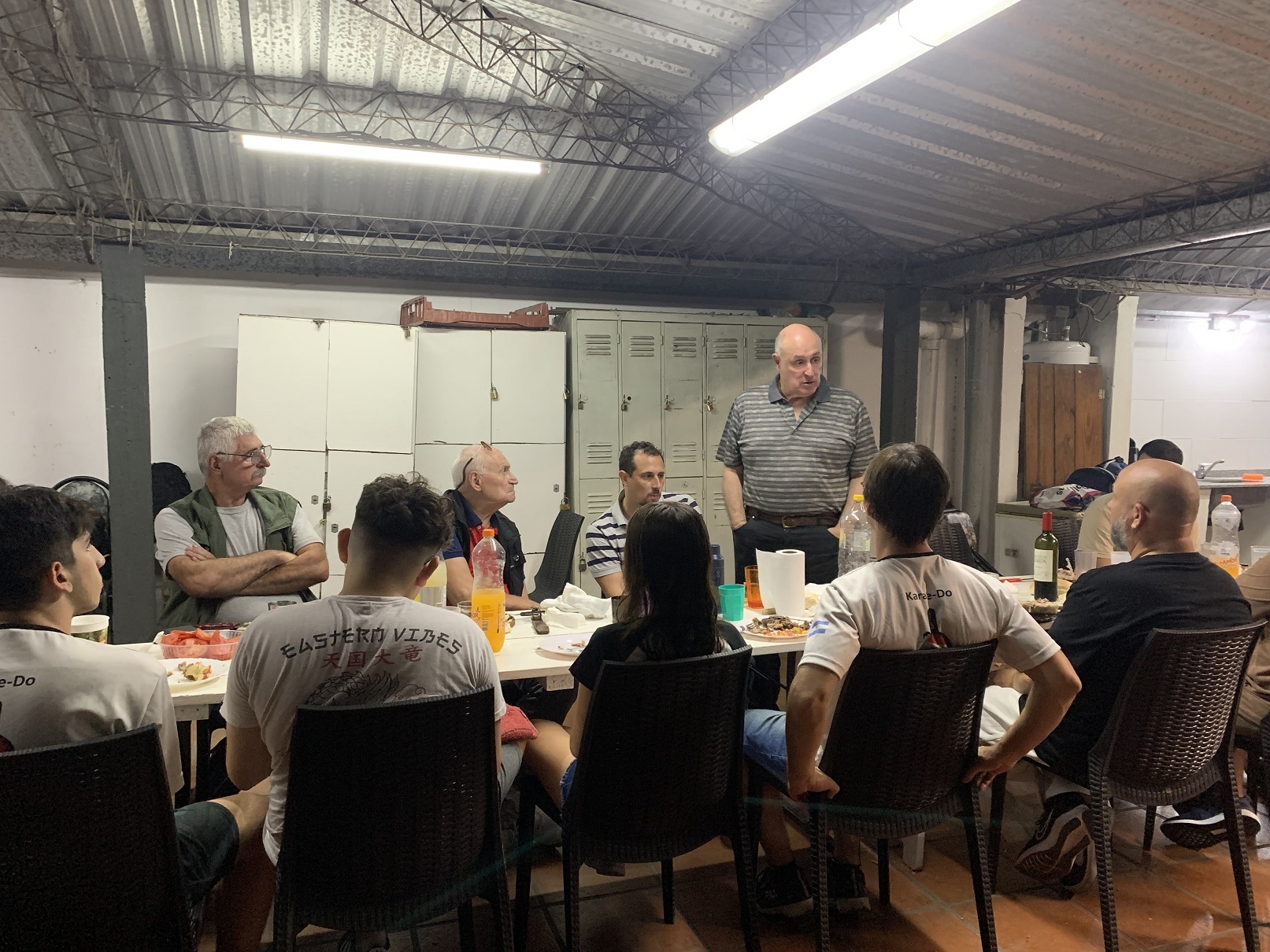 El infaltable tercer tiempo, encontró a todos los presentes compartiendo la cena y las palabras del Taborda Sensei durante el brindis, en las que destacó el espíritu de nuestra práctica y el ambiente de Dojo, cultivado a través de los años; animando a persistir en esa dirección.