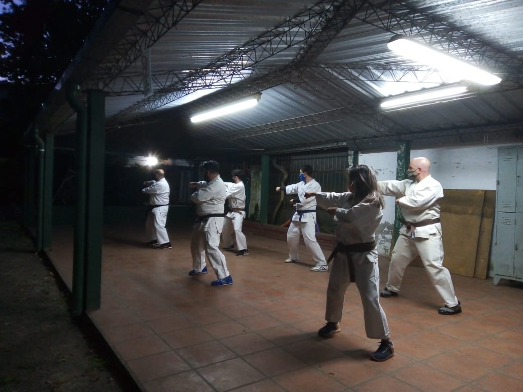 La actividad fue desarrollada en 2 grupos. A las 18.00 hs. fue el turno de los más jóvenes que ejecutaron combinaciones de técnicas básicas y ten no katá con la referencia de un compañero en frente, aunque a la distancia recomendada y sin contacto físico. En la segunda mitad de la clase, se ejecutó en conjunto Happo Gueri.-